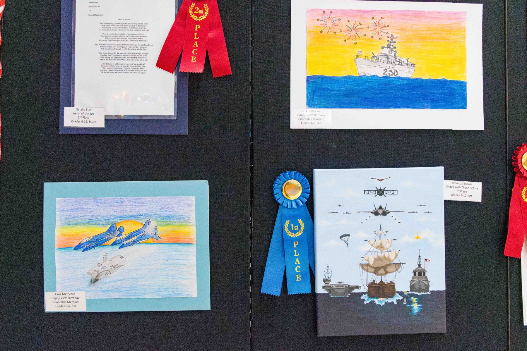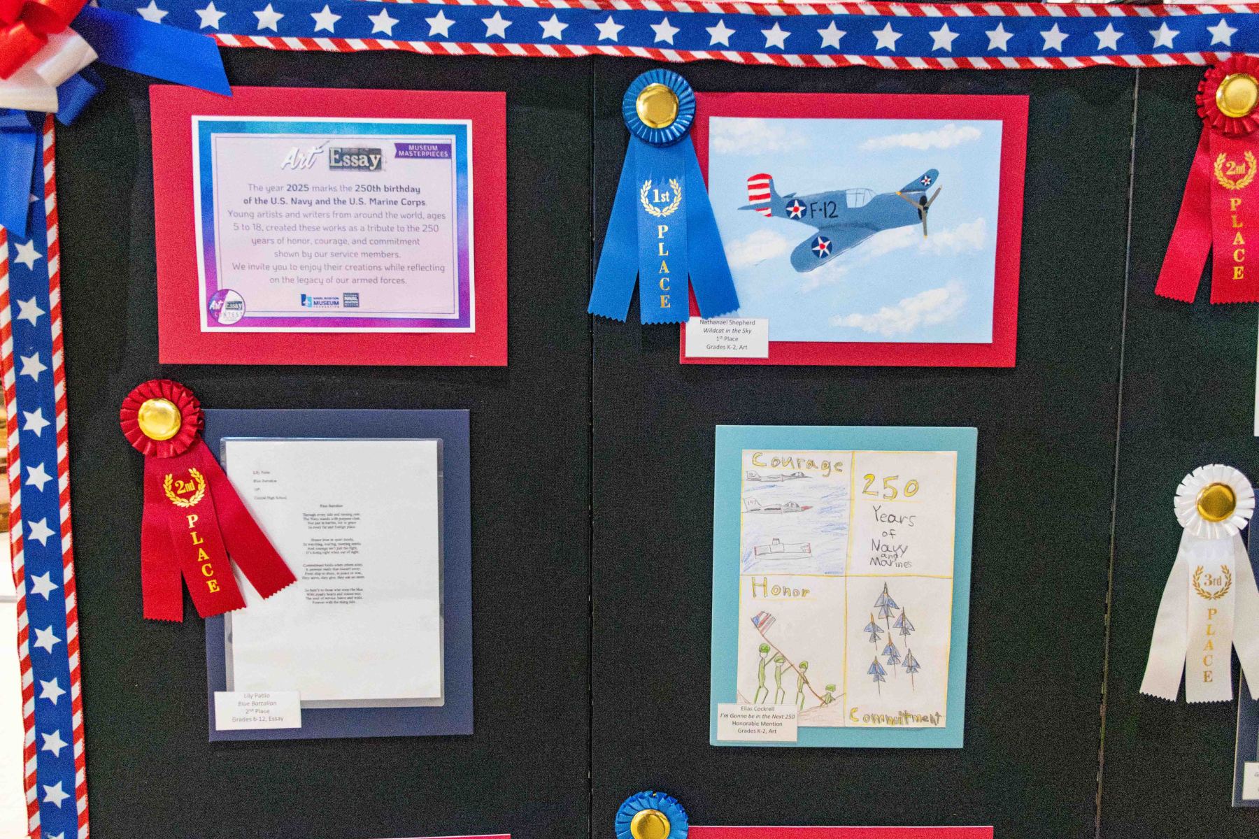 The Naval Aviation Museum Foundation is proud to announce the winners of the Fourth Annual Museum Masterpieces Art & Essay Contest, a nationwide competition that celebrates creativity, history, and the enduring values of the U.S. Navy and Marine Corps. Held in honor of the 250th anniversary of both services, this yearβs contest invited Kβ12 students to reflect on the theme of honor, courage, and commitment through visual art and essay writing.