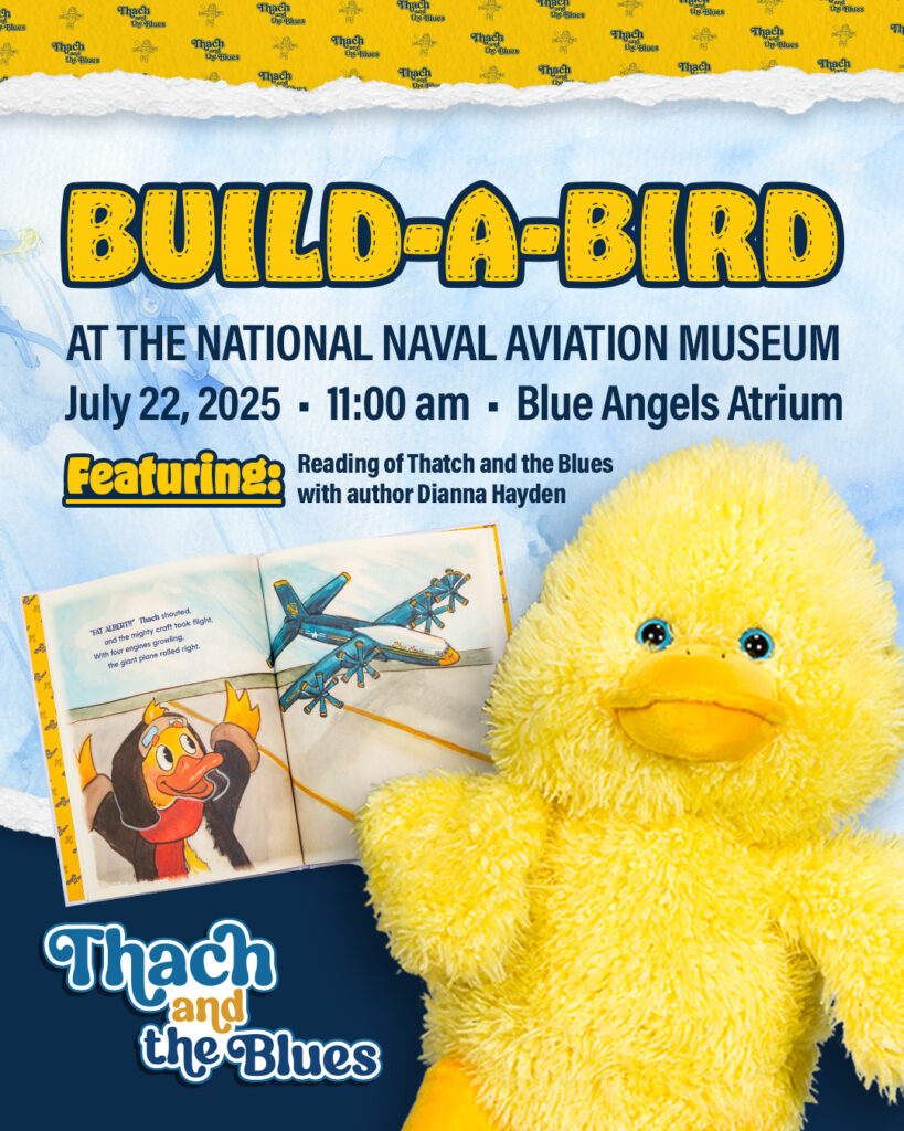 After catching the excitement of a Blue Angels practice demonstration, head inside to the Blue Angels Atrium for a special story time event featuring the museum’s newest children’s book: Thach and the Blues, written by our very own Education Director, Dianna Hayden.
