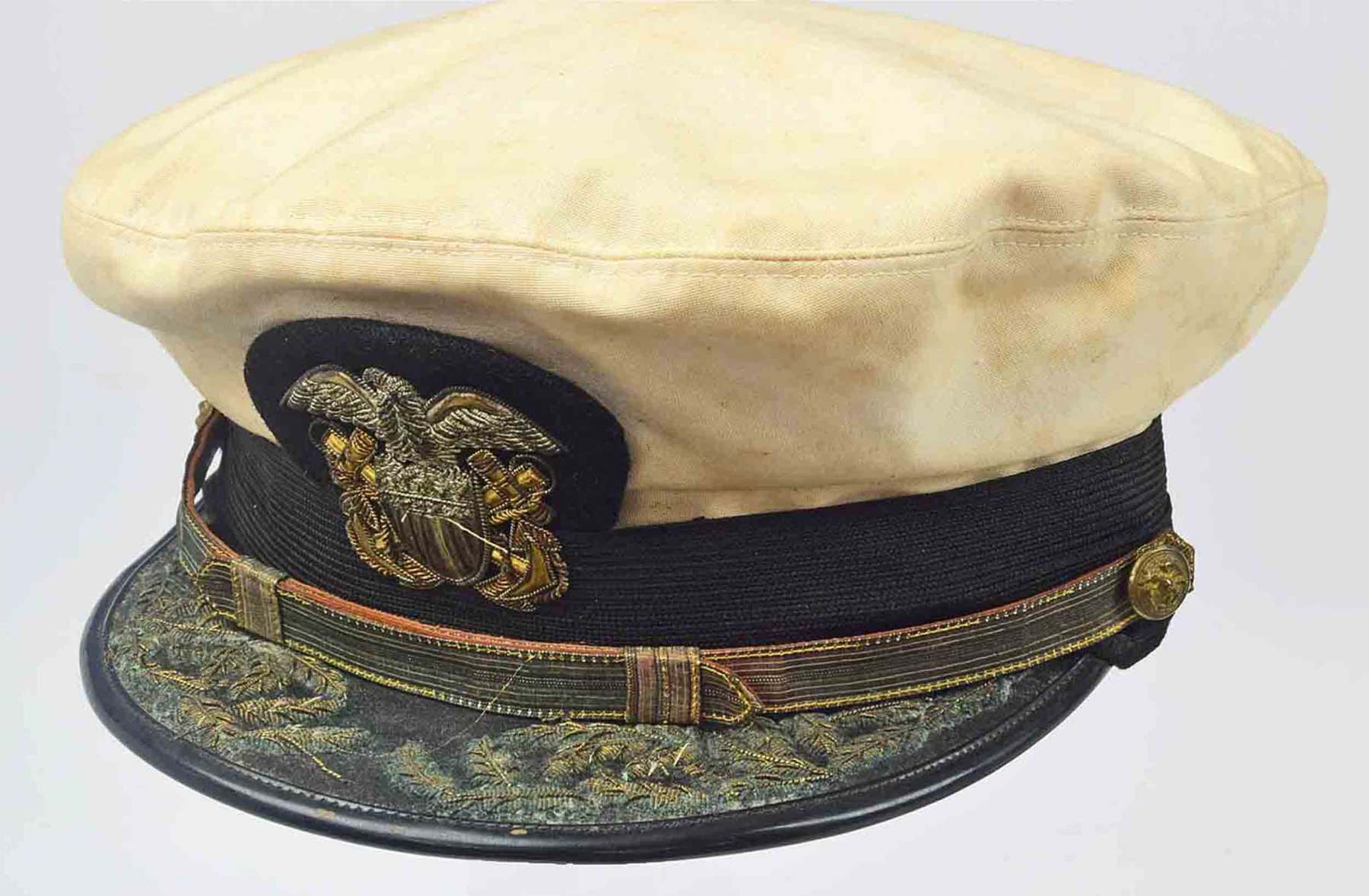 VADM Joseph J. Clark wore this combination cover during his time as Commander, U.S. Seventh Fleet. Borrowing from his Native American heritage, he instituted so-called Cherokee Strikes against major targets in North Korea.
