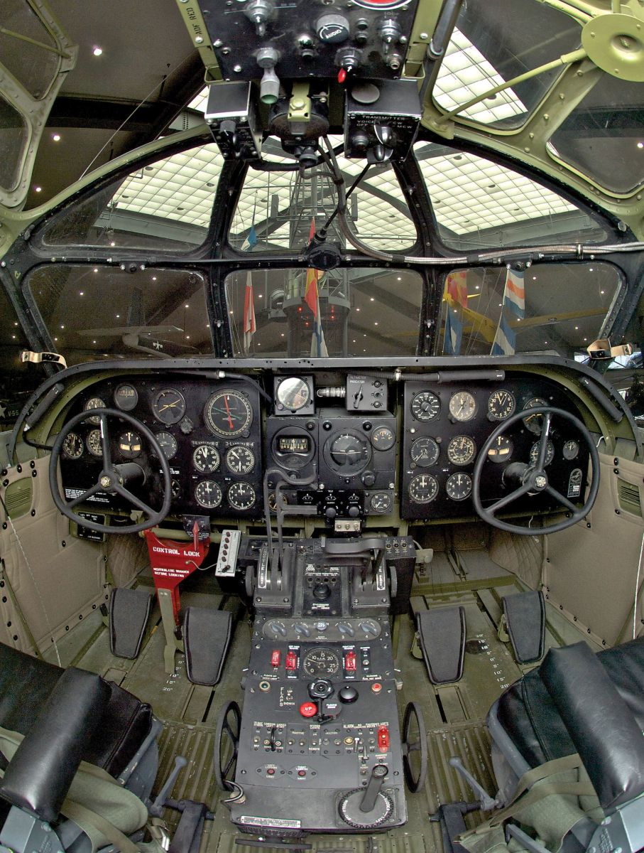 View of the restored cockpit of the museum's PB2Y-5R Coronado.