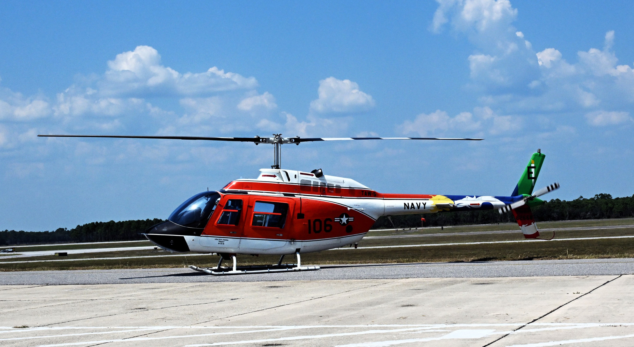 "Lucky 106," the last TH-57C to make a flight in the Naval Air Training Command, pictured after landing at Forrest Sherman Field on board NAS Pensacola for transfer to the museum.