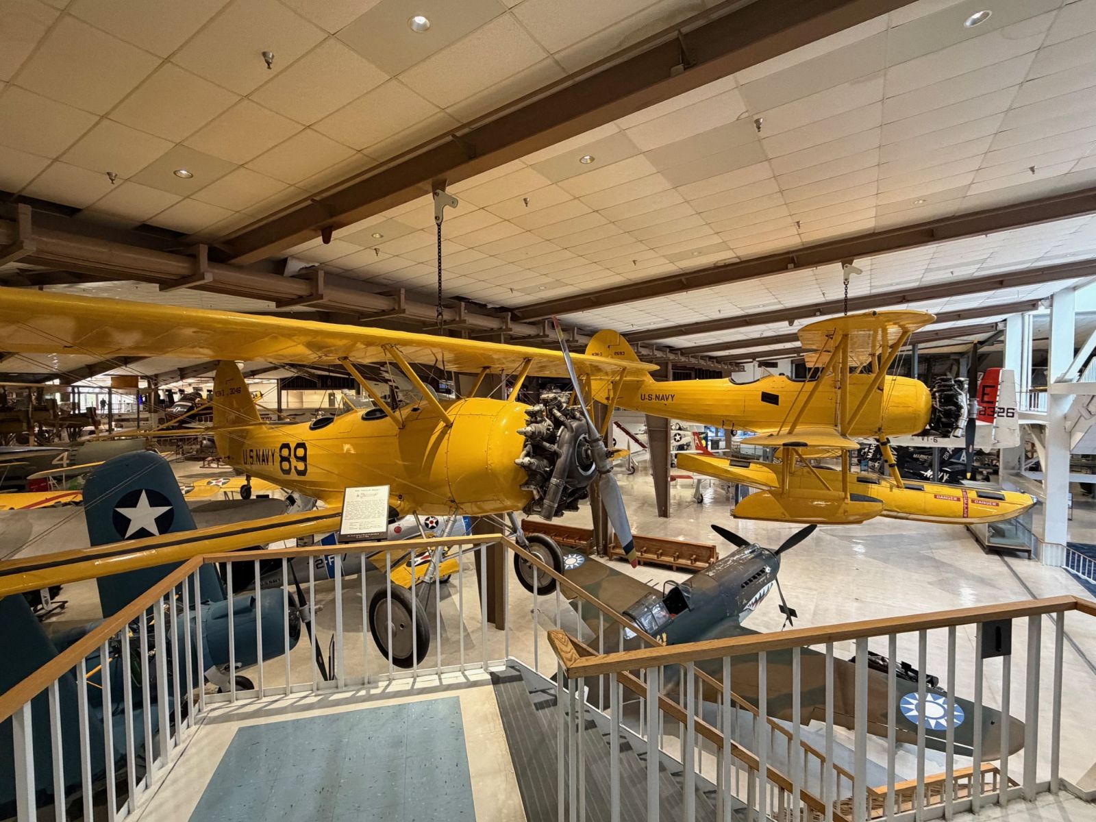 In early 2026, the TH-57C and T-34C, the former aircraft’s final flight having been for delivery to the museum and the latter a part of the collection since 2011, joined the mix. Both are suspended, the TurboMentor in landing configuration as if returning to NAS Whiting Field from a training flight.