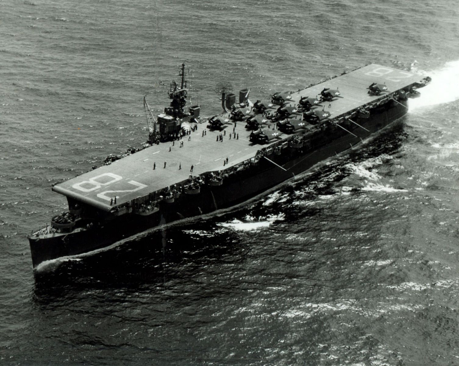 USS Cabot (CVL 28) was one of the so-called light carriers commissioned during World War II. These nine ships of the Independence class were converted from cruiser construction into aircraft carriers. Cabot was placed in commission on July 24, 1943. She displaced 11,000 tons, stretched nearly 623 feet in length and boasted a top speed of 32 knots. The carrier operated 35 aircraft and her crew numbered 1,569.