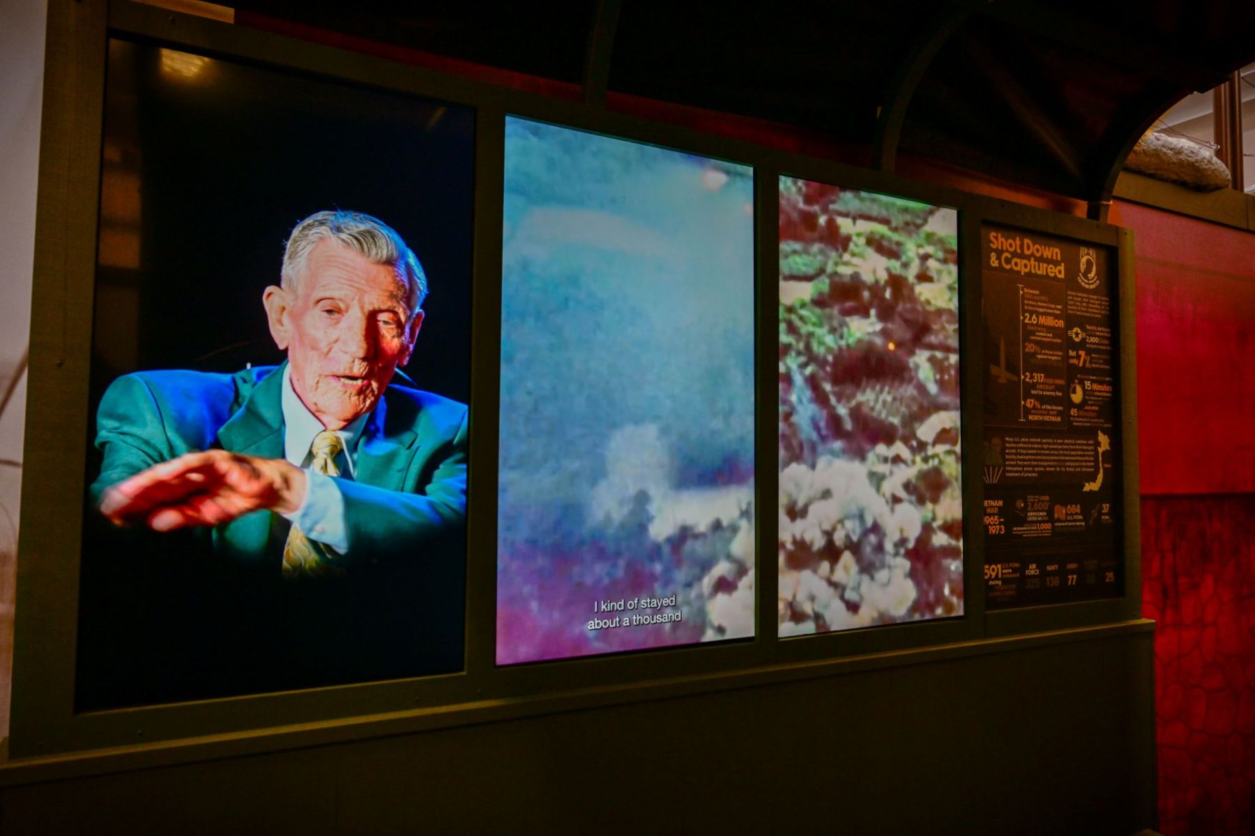 A multimedia presentation in the "Return with Honor" exhibit allows visitors to hear former prisoners of war recall the missions on which they were shot down over North Vietnam and captured.