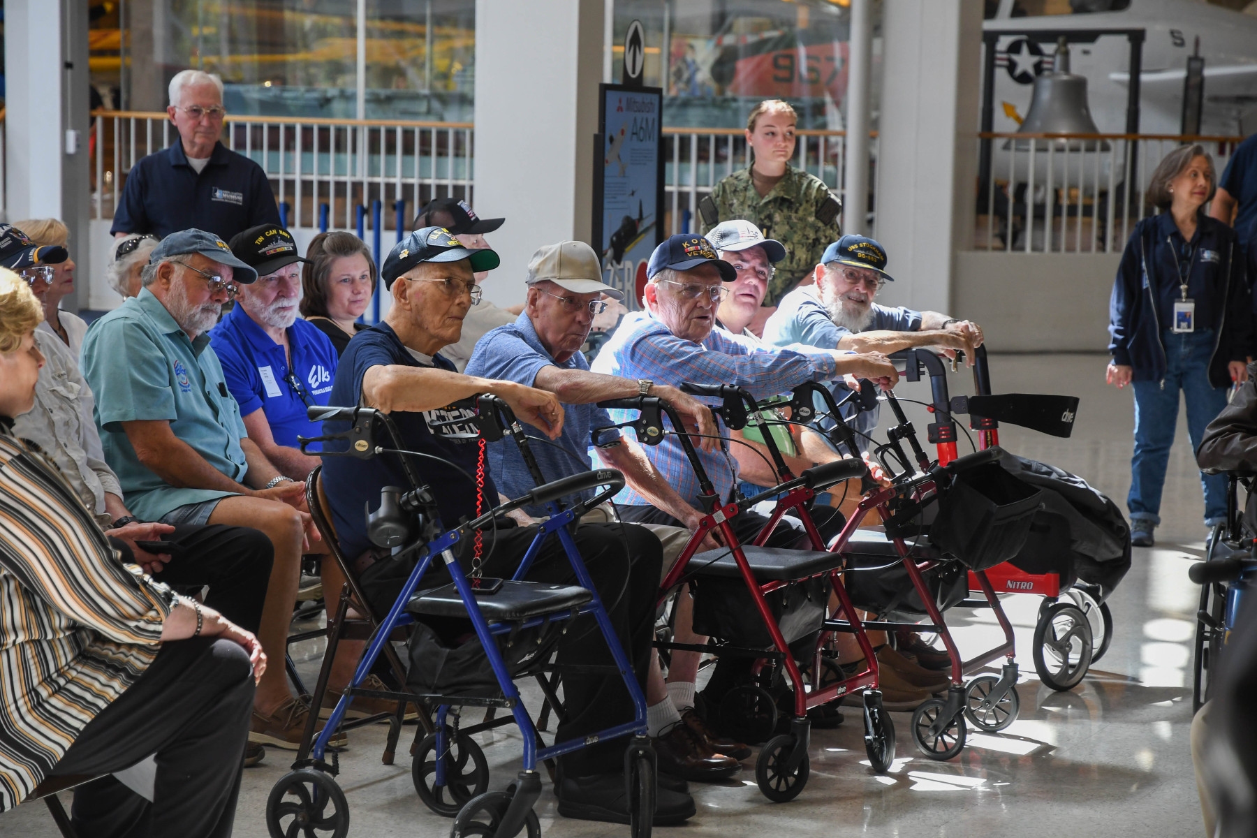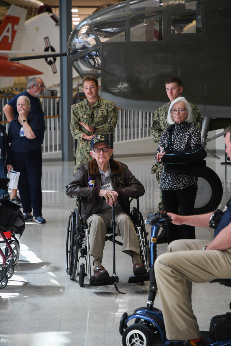 The Navigators Education Team hosted four local retirement communities to a special event, World War II Summers, on July 24, 2024. The event commemorated and highlighted the summer events of World War II. Veterans and residents from The Beacon, The Blake, Your Life, and Summer Vista retirement communities were welcomed by Admiral Kyle Cozad to the event and then treated to special sessions by docents Pete Moore and Bob Thomas. They enjoyed a visit from World War II veteran, Cash Barber, who recently celebrated his 100th birthday. The finale was an amazing performance by the Blue Anchor Belles. We’d like to extend a special thanks to our Navigators Education volunteers and the nearly 40 military volunteers who made this day possible.